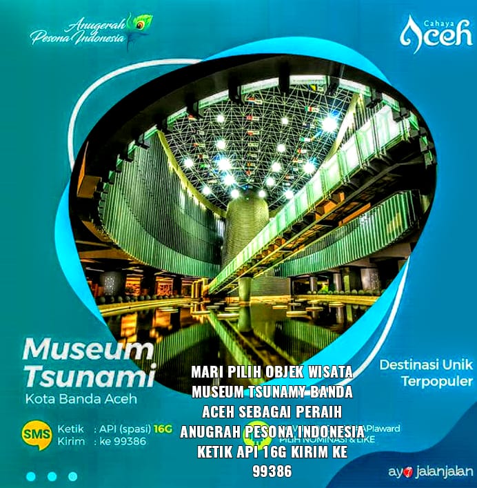 | MUSEUM TSUNAMY BANDA ACEH, MASUK NOMINASI ANUGRAH PESONA INDONESIA 2020 UNTUK KATAGORI DESTINASI UNIK, DUKUNG DENGAN MENGETIK API 16G KIRIM KE 99386 |