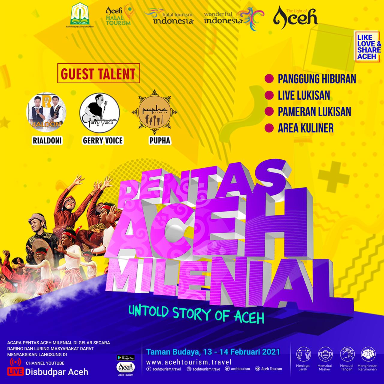 Banda Aceh – PENTAS ACEH MILENIAL ‘Untold Story Of Aceh’ even menampilkan kesenian Aceh yang dikemas dengan gaya milenial, Jumat (5/2/2021).