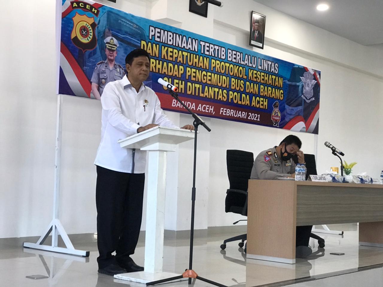 Kepala Bidang Penanganan Konflik dan Kewaspadaan Nasional Suburhan, SH menyampaikan sambutan Kepala Badan Kesbangpol Aceh Drs. Mahdi Effendi saat membuka kegiatan FGD Forum-Forum di Daerah.