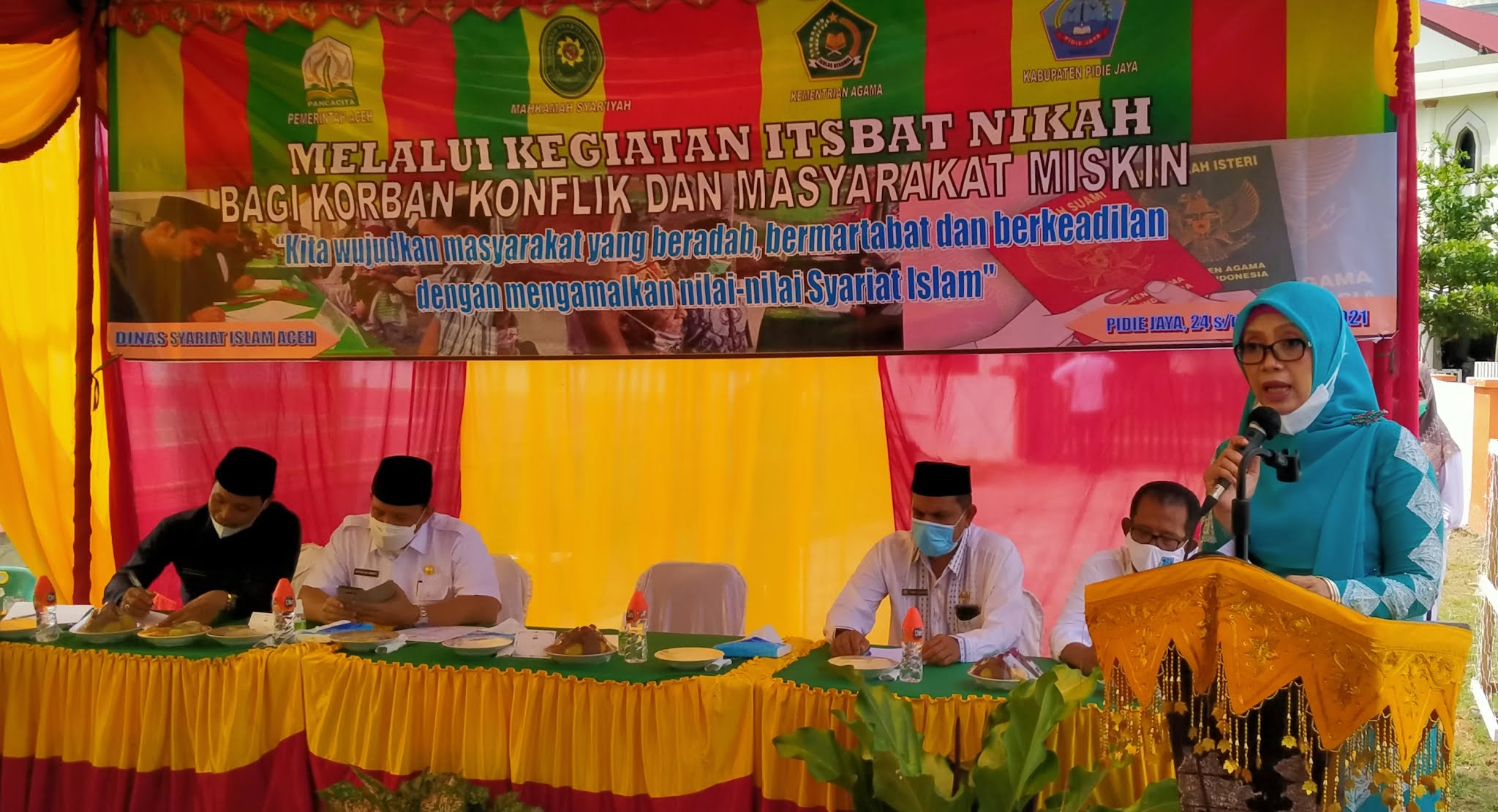 Pelaksanaan Itsbat nikah bagi korban konflik dan masyarakat miskin yang dilaksanakan selama dua hari tersebut berlangsung di halaman kantor Mahkamah Syar’iyah Kabupaten Pidie Jaya.