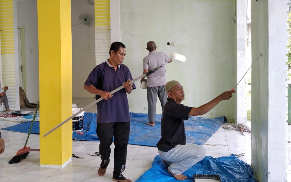Keterangan poto: Anggota Permabas Kota Sabang bersama masyarakat Jurong Ujung Sekunder bhakti sosial bersama membersihkan meunasah daerah setempat, Sabtu (27/3)