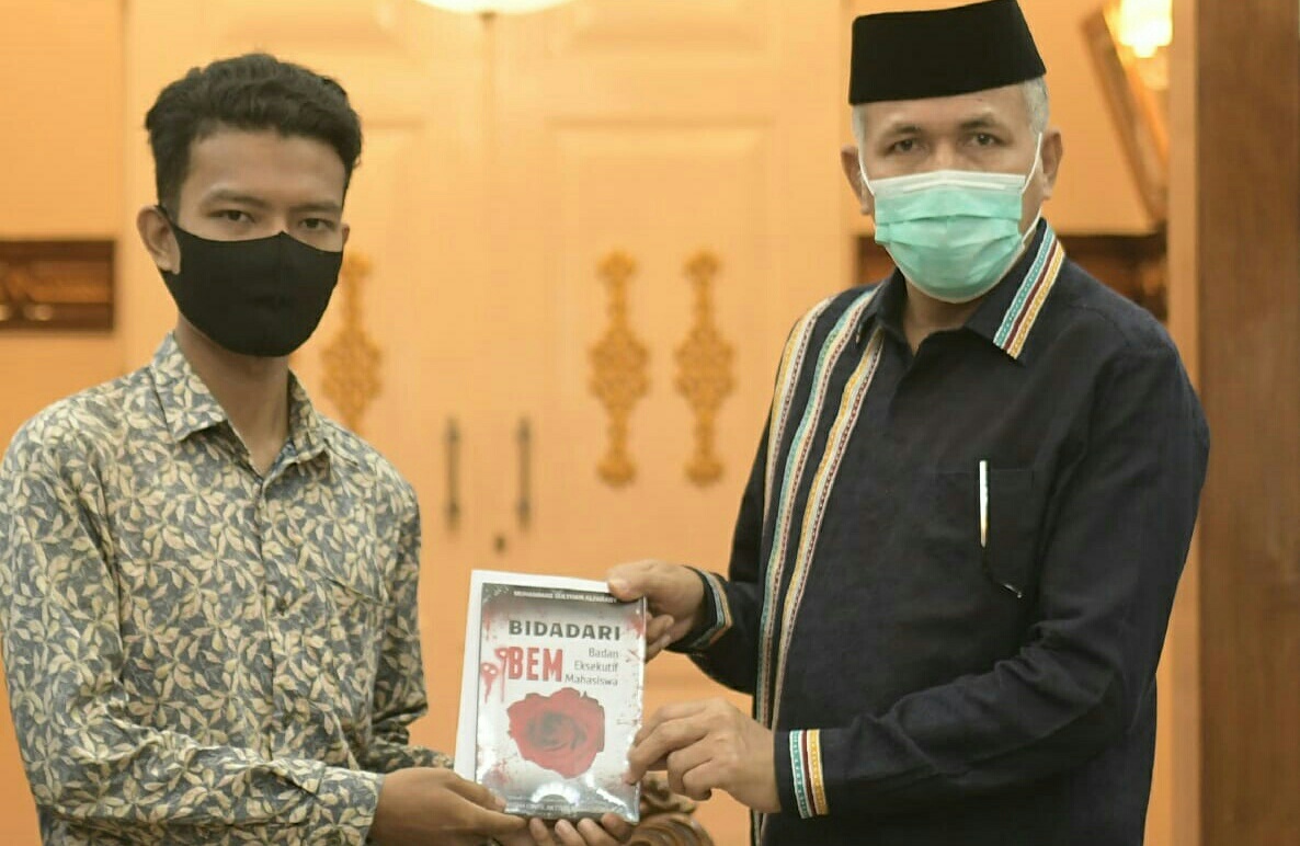 Kadis Syariat Islam Aceh Dr EMK Alidar S Ag M Hum yang diwakili Kabid PAI dan tenaga da’i DSI Aceh Dr Fikri Sulaiman menyerahkan SK perpanjangan kontrak da’i perbatasan dan daerah terpencil tahun 2021