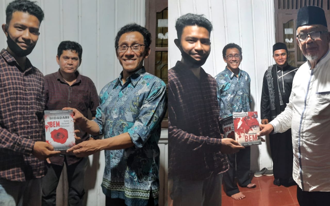 Prof. TA Sanny saat berdialog dengan perwakilan tokoh Piyeung, Bendahara Gampong Hasballah menguraikan besarnya potensi lahan kawasan pengembangan ekonomi gampong setempat.