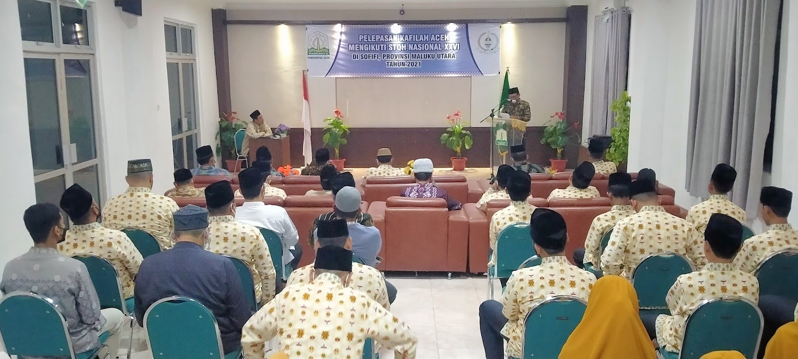 Sementara itu, Kepala Dinas Syariat Islam Aceh DR EMK Alidar S Ag M Hum dalam laporannya menyebutkan, kafilah Aceh akan mengikuti semua cabang yang di musabaqahkan pada STQH ke-26 tingkat Nasional di Maluku Utara, baik cabang tilawah putra-putri, tahfidh putra-putri, tafsir putra-putri dan cabang hadist putra-putri.