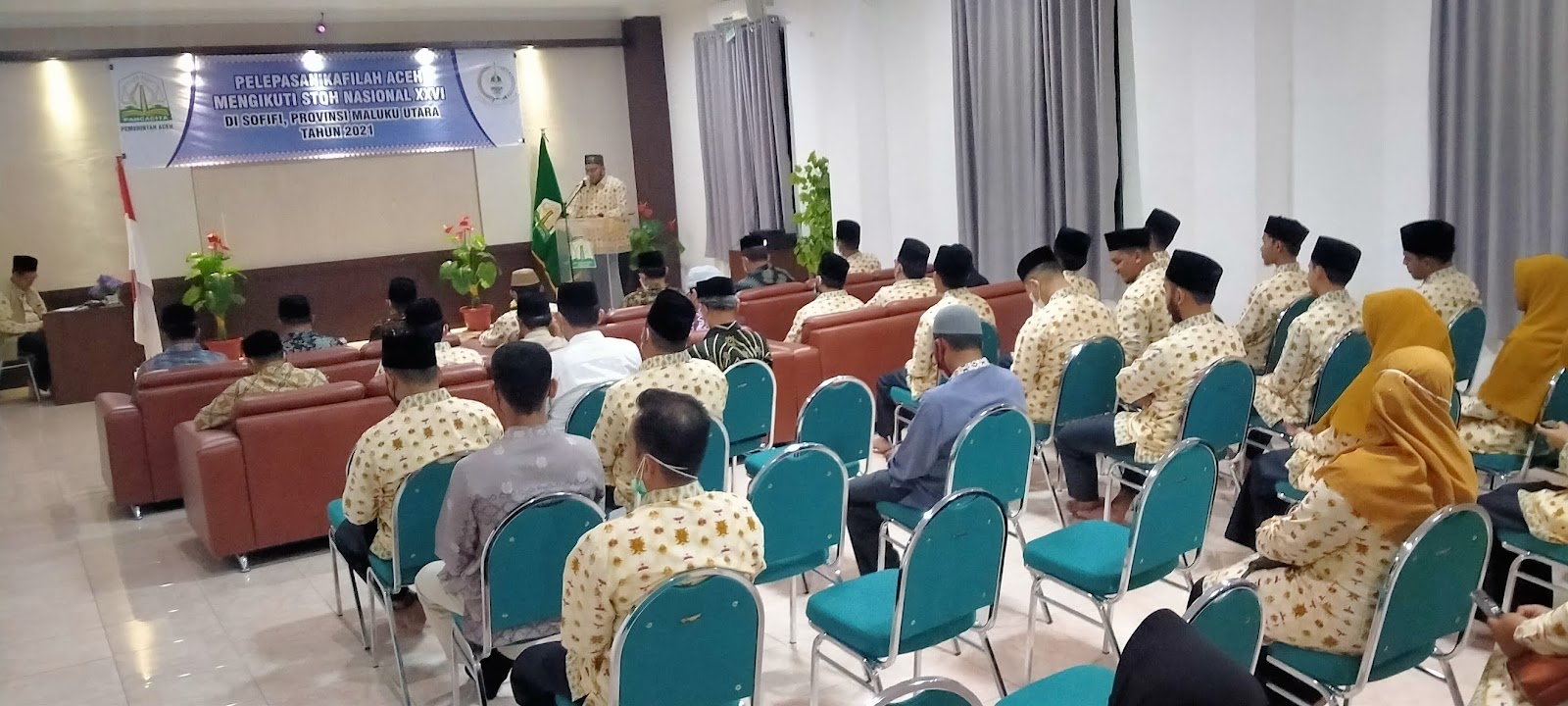 Pelepasan peserta kafilah STQHN Provinsi Aceh tersebut berlangsung di aula Lembaga Pengembangan Tilawatil Qur’an (LPTQ) Dinas Syariat Islam Aceh.
