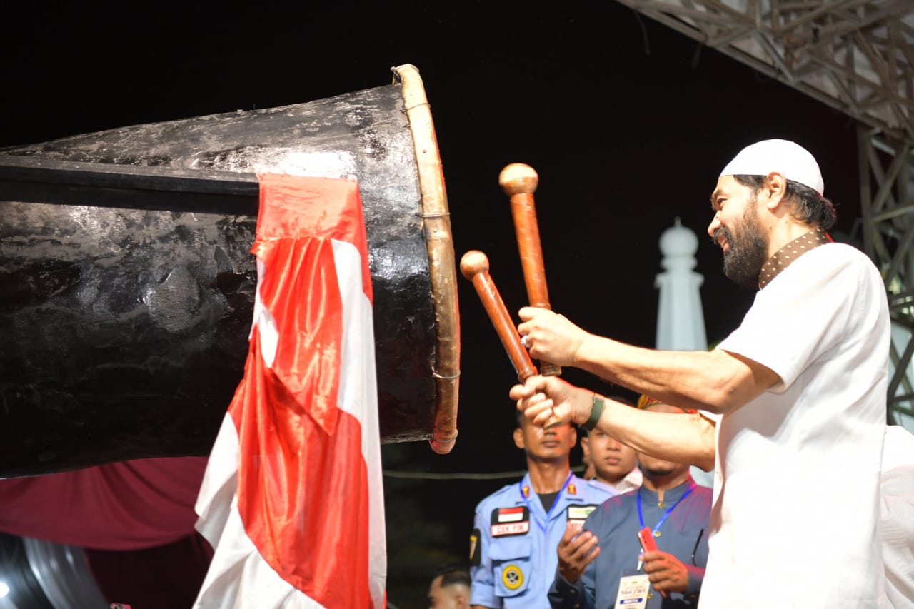 dengan mengenakan pakaian serba hitam dan kupiah putih. “Yak tamulai aju (Ayo