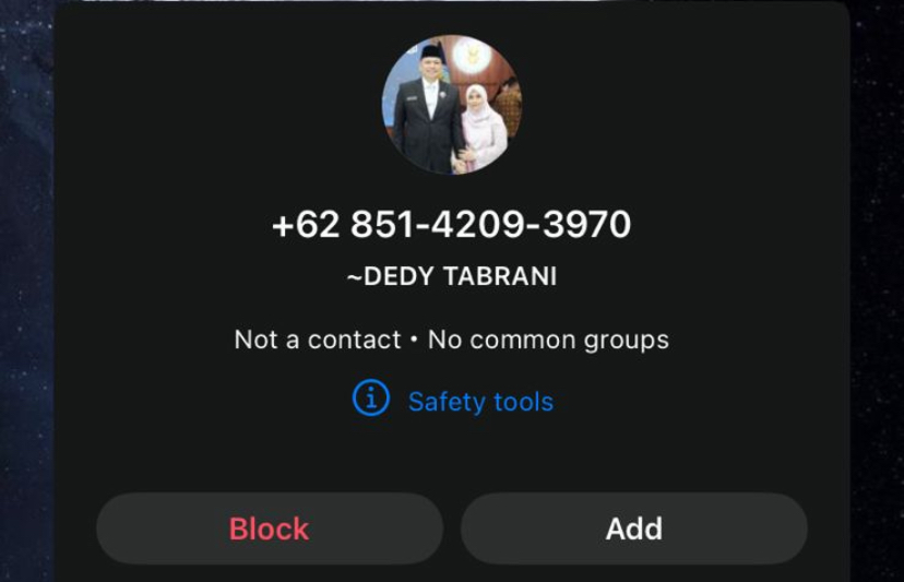Oknum tersebut menggunakan nomor 0851-4209-3970 dan mengatasnamakan Kombes Pol Dedy Tabrani dengan menghubungi sejumlah pihak melalui pesan WhatsApp. Modus ini diduga bertujuan untuk menipu dan berpotensi menimbulkan kerugian.