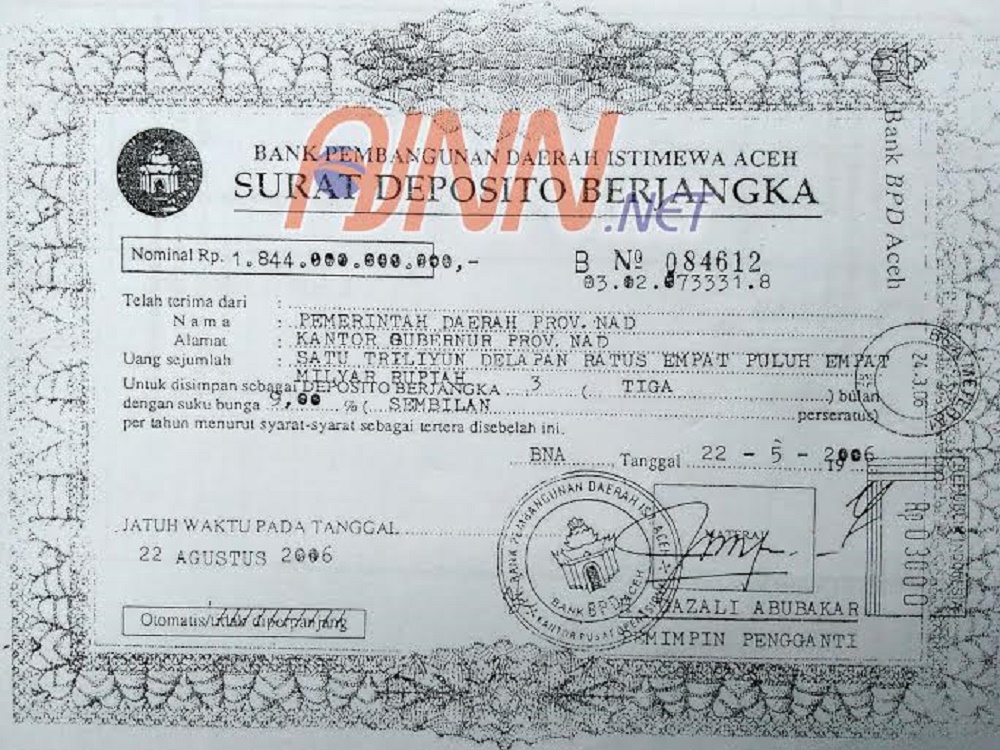 sah. Jumlahnya sudah mencapai Rp1.168 triliun yang disimpan di Bank Aceh