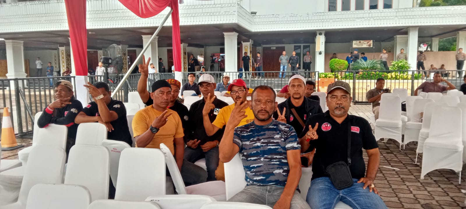 Tim Keamanan Mualem Center Aceh berkumpul di kantor DPRA untuk mengawal dan mengawasi hasil pleno KIP Aceh, memastikan keamanan suara kemenangan pasangan Mualem-Dek Fadh dalam Pilkada Aceh 2024.