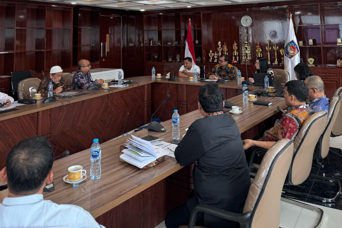 Asisten Pemerintahan, Keistimewaan Aceh, dan Kesejahteraan Rakyat Sekda Aceh, Azwardi Abdullah, memimpin rapat di kantor Kemendagri, Jakarta, Jum'at (16/5/2025). (Foto: HO-Pemerintah Aceh).